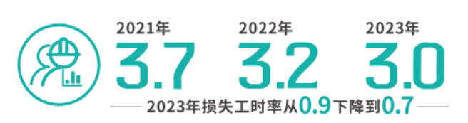 安全生產(chǎn):安全生產(chǎn)是藍星??系闹刂兄?。據(jù)統(tǒng)計,藍星???0萬工時總可記錄的工傷率(TRIR)連續(xù)三年下降: